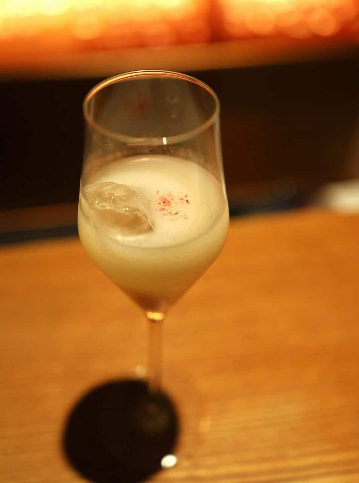オリジナルのノンアルコールカクテル。写真は自家製の甘酒にトニックウォーターと桜を合わせたもので、日本酒が苦手な方も楽しめるテイスト♪