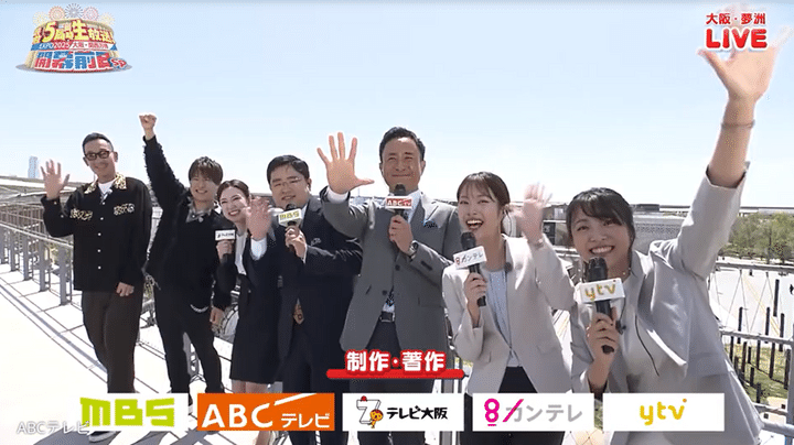 大阪の民放5局(MBSテレビ、ABCテレビ、テレビ大阪、カンテレ、読売テレビ)が、史上初となる同時生中継! 「EXPO 2025 大阪・関西万博」で、各局のアナウンサーたちが垣根を越えてリポートし、多くの視聴者を驚かせた。
