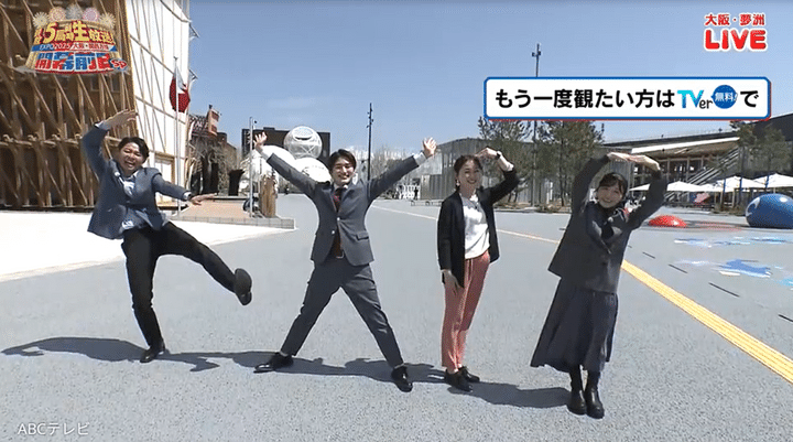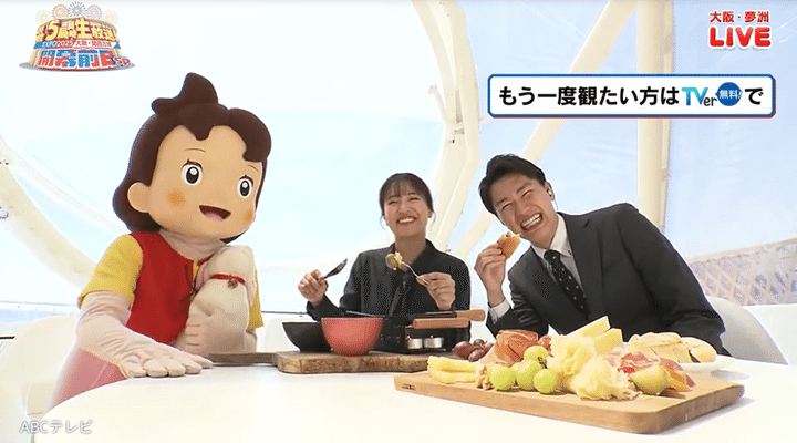 EXPO 2025 大阪・関西万博の開幕前日である4月12日に、特番『民放5局同時生放送!EXPO2025大阪・関西万博開幕前日SP』が生放送された。同番組には、各局のアナウンサーが垣根を越えて集結したほか、万博オフィシャルテーマソングを歌うコブクロのゲスト出演もあり、開幕前日から大盛り上がり。その中でアナウンサーたちは、現地のパビリオンや、注目の展示物、グルメなどをリポートした。