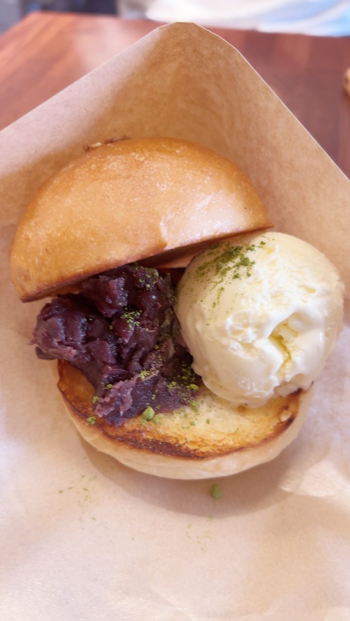 ちょうど良い甘さのほっこりするあんこと、アイスクリーム、端っこがサクサクッとしたバンズが、これまたベストマッチ♡