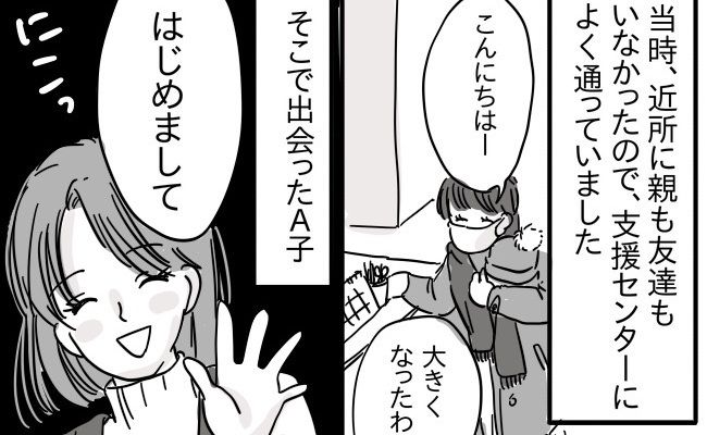 当時私は近所に親も友達もいなかったため、支援センターに通い、他のママや職員の方と話して育児のストレスを発散するようにしていました。そんななかで声を掛けてくれたママ友のA子。