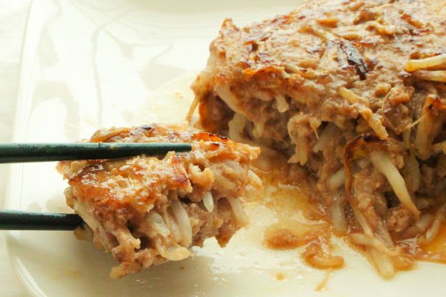 【もやしと挽き肉だけの節約おかず】フライパンに全部ぶち込んで手で潰して混ぜて固めて…焼いてみた!