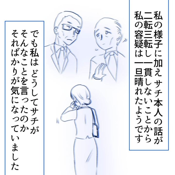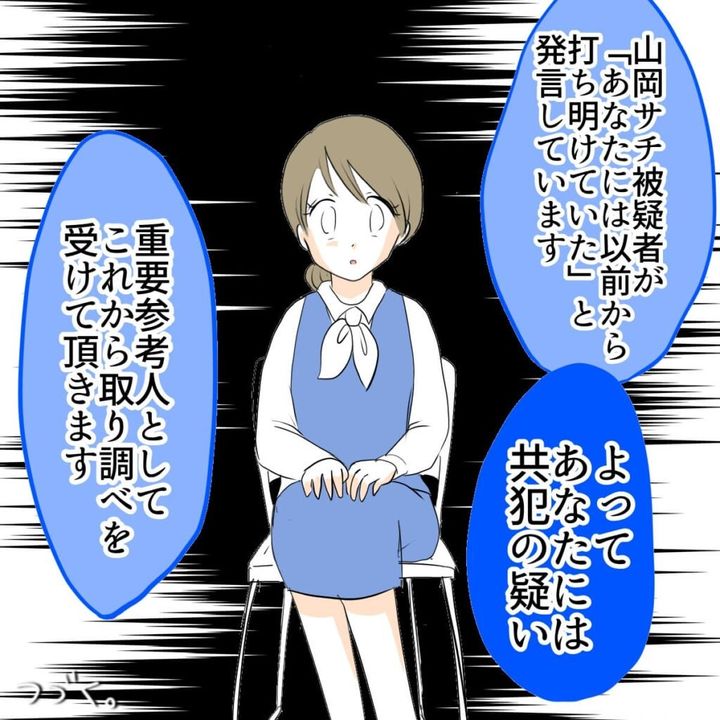 そして、会社の上層部が本人に事実確認をしている間に誰かが警察にリークし、サチは警察に引き渡されることに…。ここから全員個別に警察から事情聴取をされることになります。