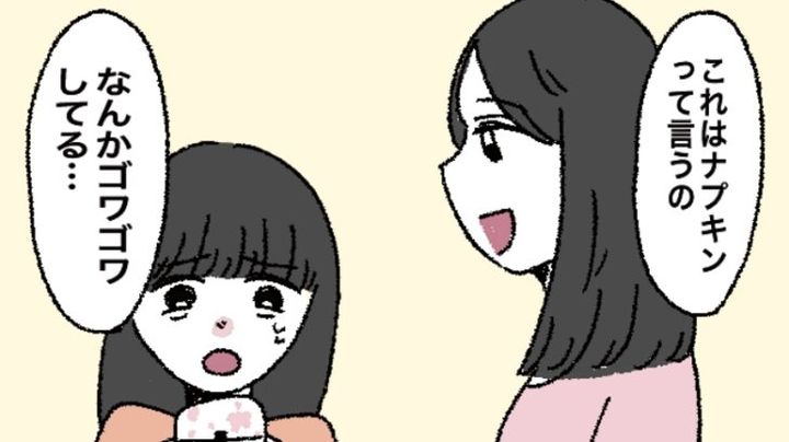 ナプキンを着けてみて。娘に渡すと…