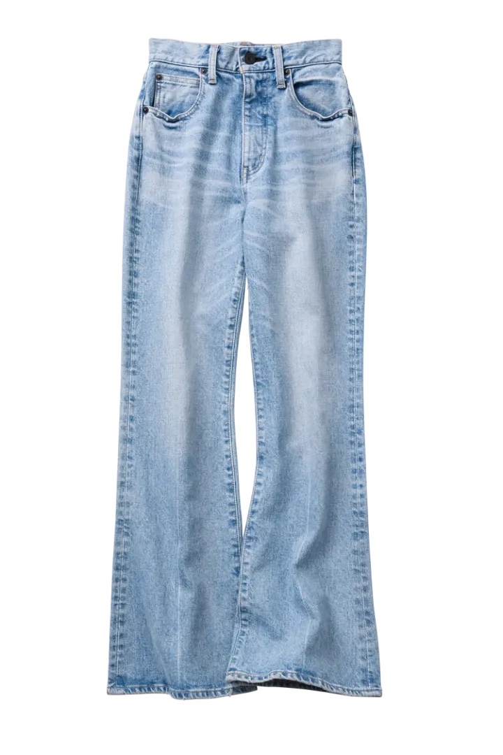 デニムパンツを新調するなら、フレアーを選ぶのが最適。ピタッとした形でこなれ感が爆誕!