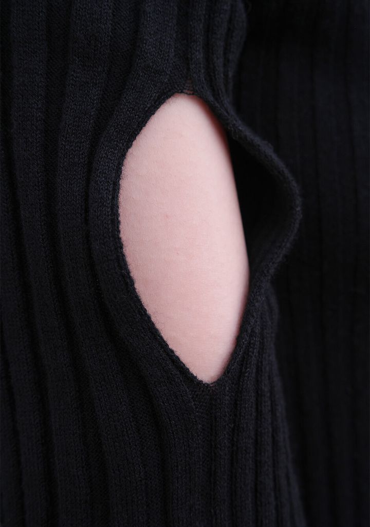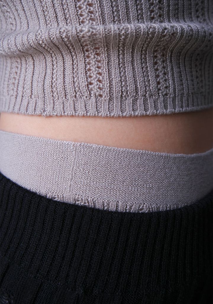 2024年春夏コレクションからは、ホールガーメント技術を活用して単一素材の衣服を製作することを目指し、衣服をリサイクル可能なものとして成立させる方法を研究している。