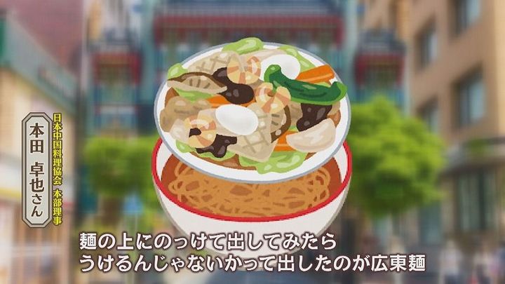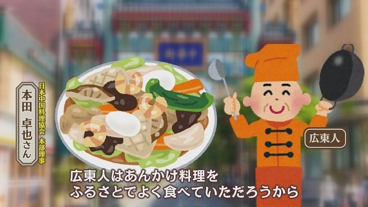 本田さん:「広東麺っていうのは、日本の中華街が発祥だと思う。中華街っていうのは、元々ほとんどが広東人。広東人はあんかけに料理をふるさとではよく食べたいた料理だろうから、いろんな具を入れて餡にしたものを作りました」