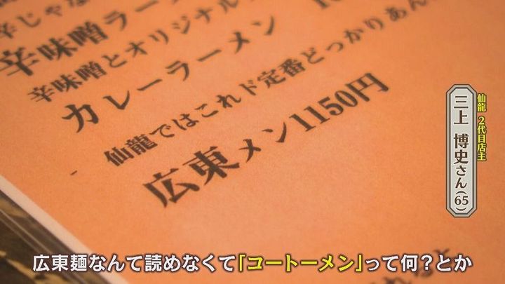 店主 三上さん:「昭和の頃って、広東麺ってわかんないじゃないですか。広東麺なんて読めなくて『コ―トーメンって何?』とか。少しずつ浸透してきて。これも食べてみようかなってなって、『なんだうまいじゃないの』って、そういう話でだんだん浸透していったんだと思う」