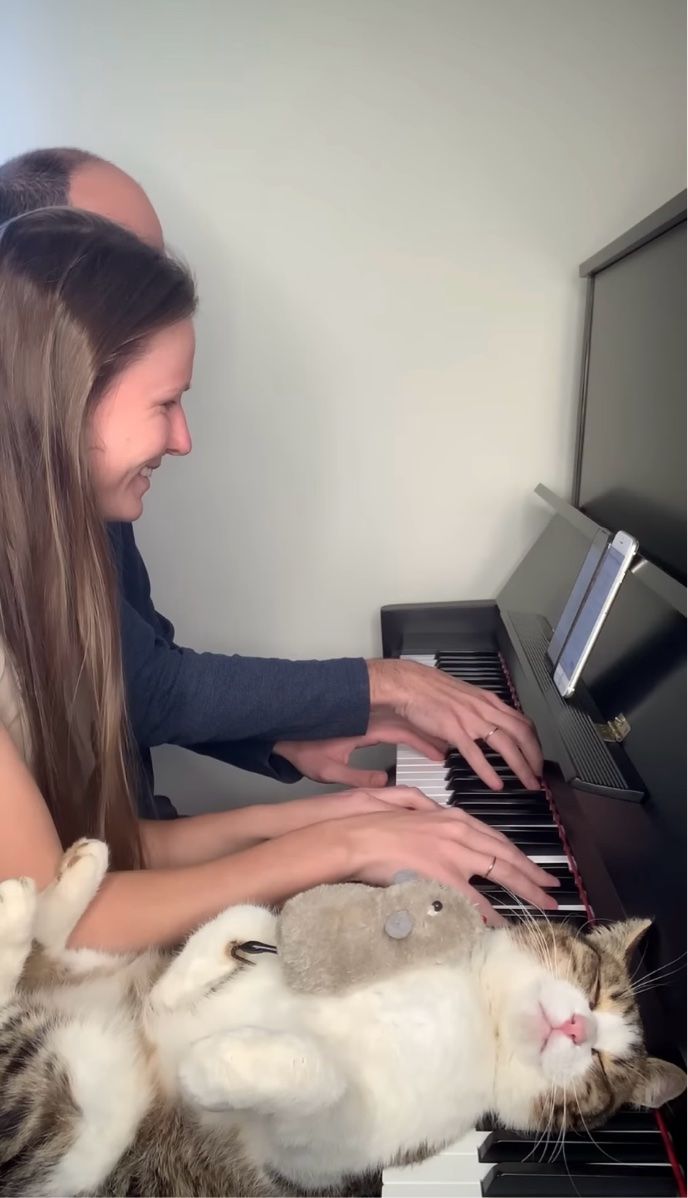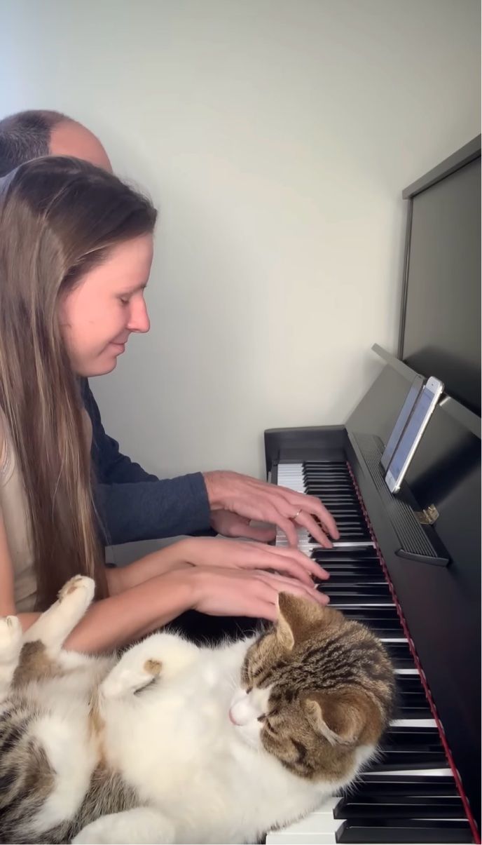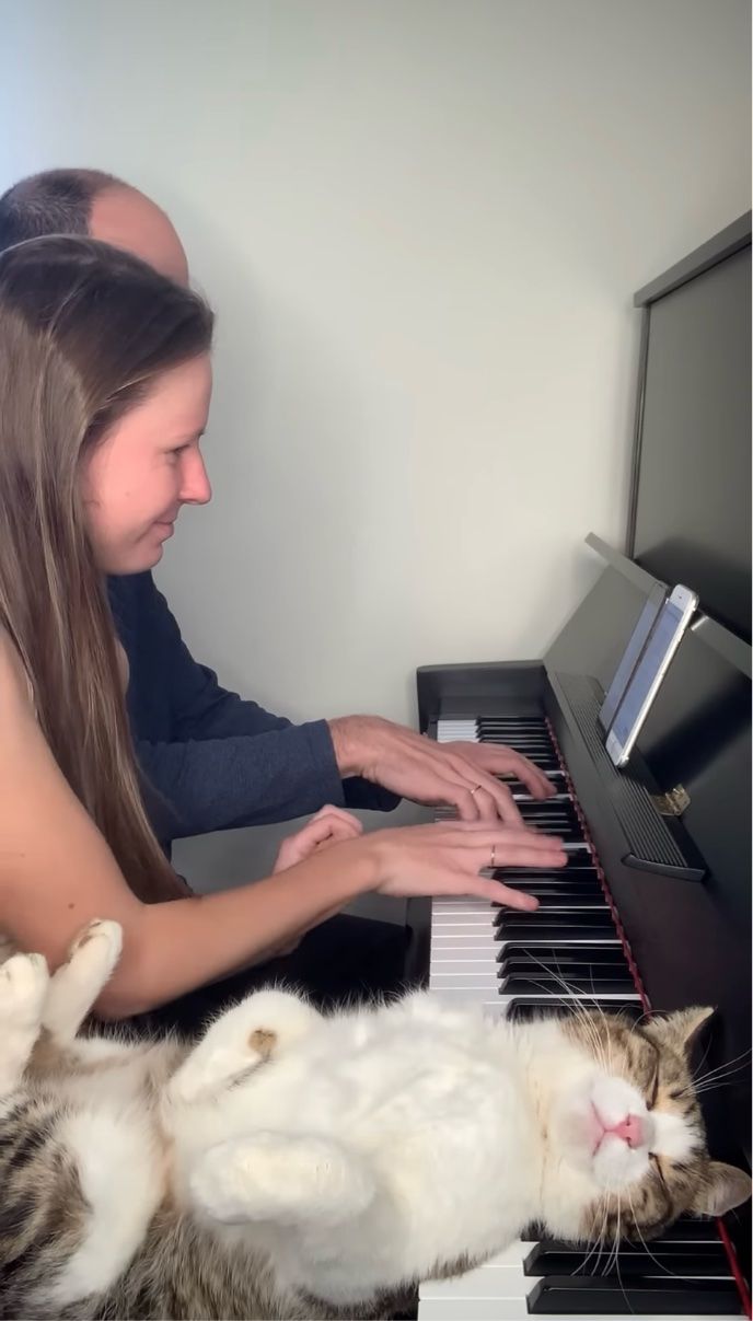 ピアノの鍵盤を枕にして寝転んでいるネコ。 すぐ隣りで心地よい音色を響かせる演奏がされていましたが、ある理由からこのネコはパッと目覚めたのでした。