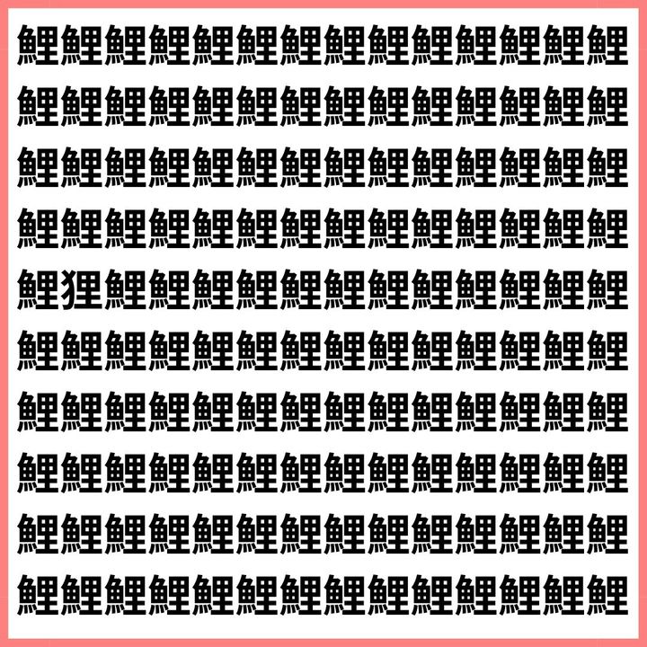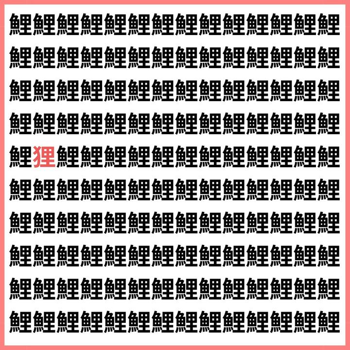 鯉の中に隠れている動物は何かな?【1文字だけ違う】漢字間違い探しで脳トレ、何秒で見つかる?