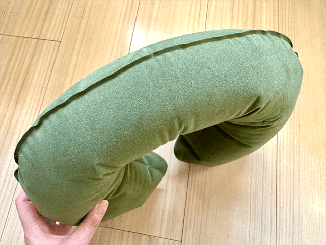 U字型でありながら、くるんとフィットに比べると四角い形状。四角い形になっている分、支えてくれる範囲が広いので、頭が斜め後ろに倒れても安心感があります。