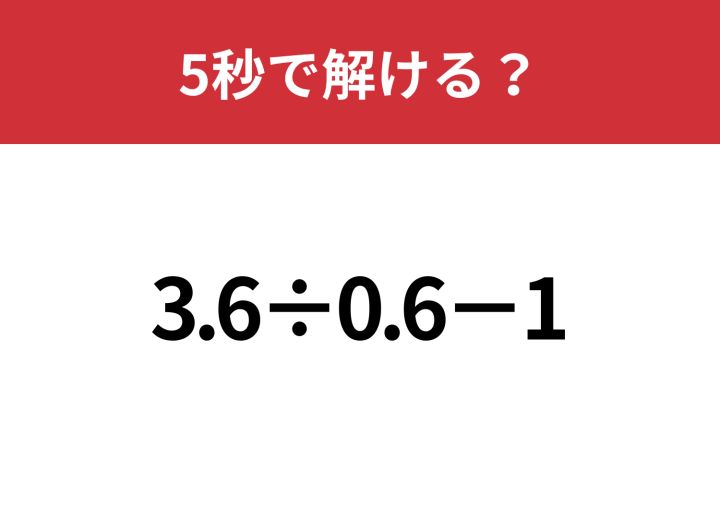 大人なら間違えずに正解できるはず?「3.6÷0.6−1」5秒で解ける?