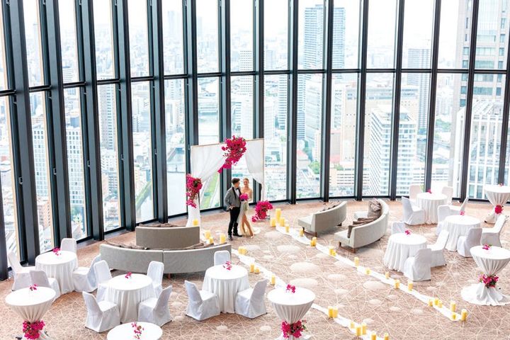 永遠の愛を誓うセレモニーも、スペシャルな場所で行えたら感動もひとしお。眺望が素晴らしいロビーラウンジやシックなバーなどの美しい空間を思い思いに飾り、特別な式を演出!