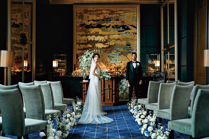 人気のバーやロビーでのスタイリッシュな挙式「セント レジス ホテル 大阪」では11階のロビーに長いバージン・ロードをしつらえてセレモニーができ、ホテルを代表する「セントレジスバー」や12階の日本庭園「天空の庭」を挙式場所に選択することも可能。ふたりらしい自由なスタイルで誓いを立てられます。