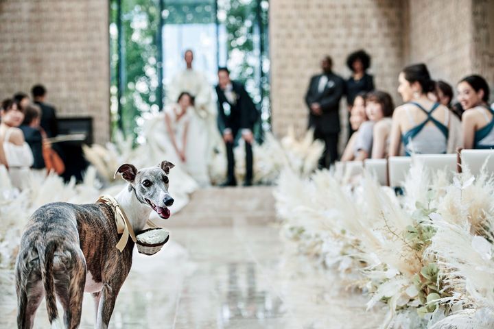 愛犬にリングを運んでもらうサプライズな演出もオールペットフレンドリーなことで知られる「キンプトン新宿東京」の「3‑DAY ウエディング」では、結婚式当日はもちろん、前日から翌日もホテルでペットと一緒に過ごすことができます。挙式では愛犬と一緒に入場することや、肉球証明書、リングドッグなどの演出が人気。披露宴にも参加できるので、愛らしい姿をたくさん写真に収めて。
