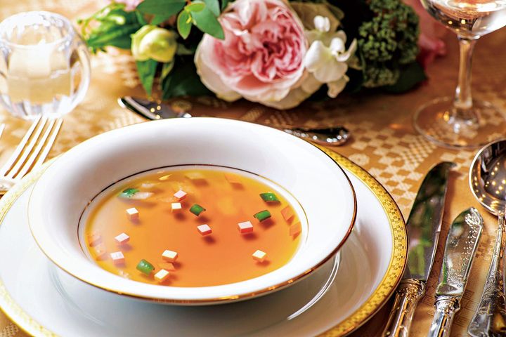 思い出や感謝を込めたオリジナル料理でおもてなし「ザ・ペニンシュラ東京」では、シェフと打ち合わせを行いながらつくるフルカスタムメイドのコース料理が人気。たとえばふたりで出かけた旅先の食材を使ったり、家族の思い出のメニューを加えたり、ゲストもきっと感動してくれる唯一無二のコースが完成します。