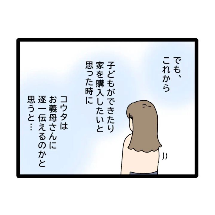 「でも、これから子どもができたり家を購入したいと思った時に、コウタがお義母さんに逐一伝えるのかと思うと・・」
