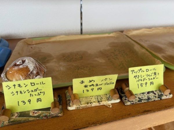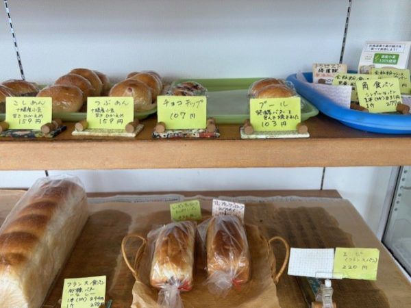 右上に置かれた値札を見ると、まだまだ他にもパンの種類がたくさんあったんだろな~と推測でき、パン棚を見渡します。