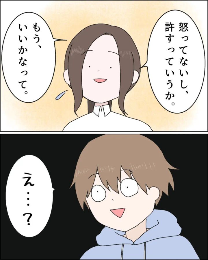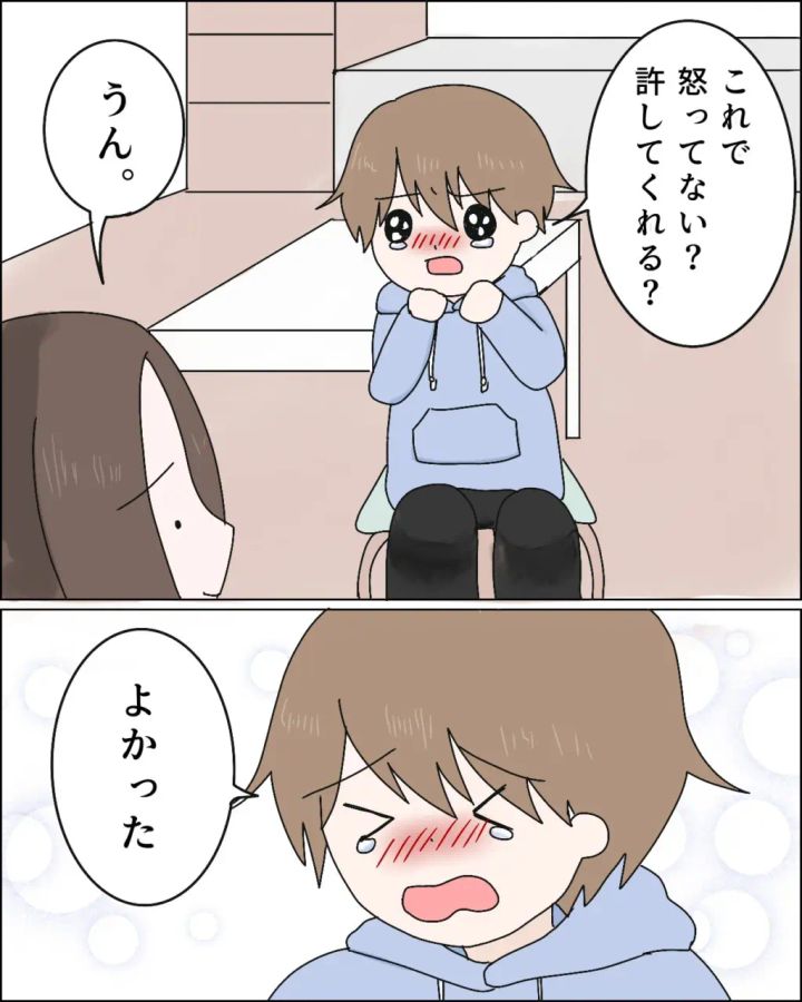 涙が止まらないレイさんは「これで怒ってない?許してくれる?」確認します。「うん」とエミさん。それを見て「よかった」安堵しました。