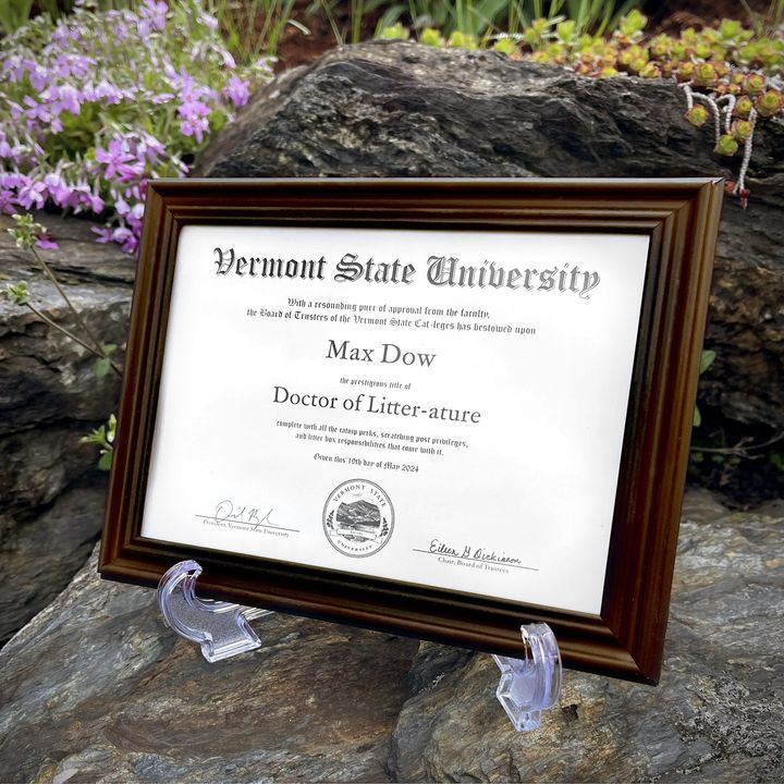 “Doctor of Litter-ature”というダジャレ学位が授与される / Credit:Vermont State University