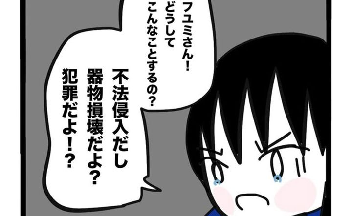 その行動に驚愕したハルさんは「どうしてこんなことするの? 不法侵入だし器物損壊だよ? 犯罪だよ!?」と涙ながらに問い詰めます。