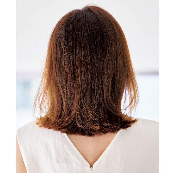 毛先を重め、顔周りは前上がりレイヤーで若々しい印象に