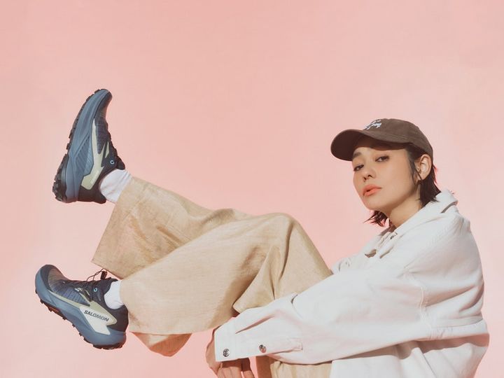 カジュアルな着こなしの説得力を増したいなら、足元を本格的なトレランシューズにしてみるのも手。スタイリッシュなサロモンなら、通常のスニーカー感覚でさらりと取り入れられます。サポート力満点のはき心地、やみつきになるかも♡