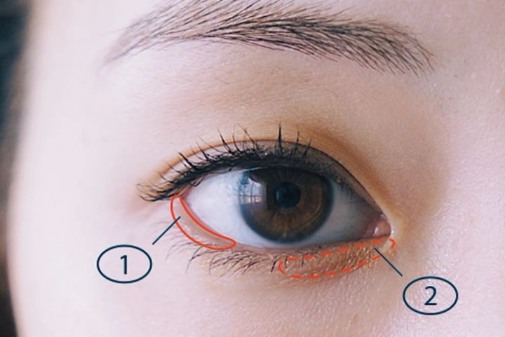 を下まぶたの目頭側に、を下目尻に塗る。ベージュの微差でほんのりニュアンスを出すと上品な甘顔になる。