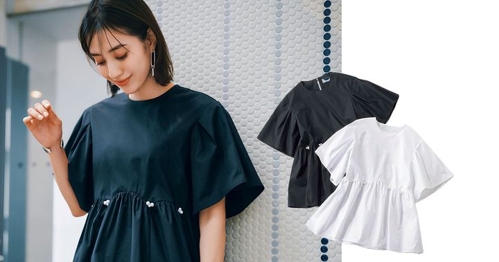 切り替えラインがキュート。袖にゆとりのあるデザインで二の腕をカバーしたり、高めの切り替え位置で腰高に見せたりするなど、スタイルアップの工夫もいっぱい。
