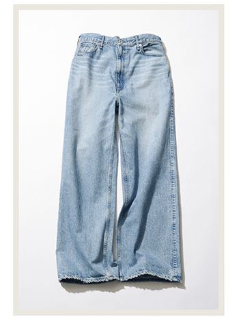 太ももにもすそにもゆとりのある形に加えて、強めの洗い加工。今デニムを選ぶなら、力が抜けて見える“親しみやすさ”に重きを置いたデザインがねらい目。