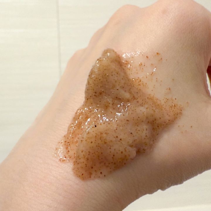 このスクラブはまずチューブタイプというところが最高で、使うとき本当に手軽。週に2回、たっぷり出してヒップや太ももの裏、膝、肘、ワキ、そして粘膜までいかない、いわゆるVラインに使います。スクラブ自体大好きなんですが、やわらかい肌当たりで負担が少なく、それでいてしっとりすべすべになれるのでこれはかなりの大ヒット! 使った後は、ボディクリームはいらないかな? というくらいちゅるちゅるの肌になれます。