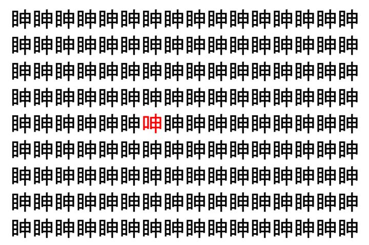 画像の中には、「眒」という漢字が縦に9行、横に16個並んでいます。 全部で144個となりますが・・・、そのうち1つは「異なる漢字」となってますよ!!