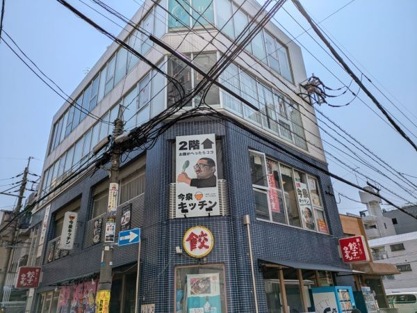 場所は、西鉄天神大牟田線福岡(天神)駅から徒歩数分の、国体道路から南に少し入った所。こちらのビルの2階にある「今泉キッチン」(いまいずみきっちん)というお店です。インパクトのある看板なので、すぐに見つけることができますよ♪
