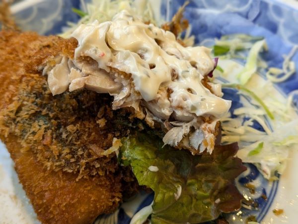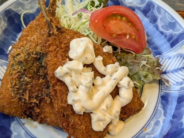 アジの身はふっくらと分厚く、タルタルソースと一緒にかぶりついたらこの上ない美味しさ!気分に応じてソースやマジックソルトや七味唐辛子などと食べるものお勧めです♪