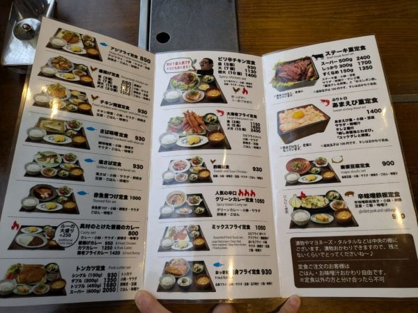 メニュー表を見ると、種類が豊富な上にメインの量を選べるものも多く、自分にぴったりのメニューが選べそうです。そして、価格は800円~とリーズナブルな上に、どの定食にもご飯・味噌汁・漬物類・タルタルソースなどがお替わり自由が付くという太っ腹ぶりです!