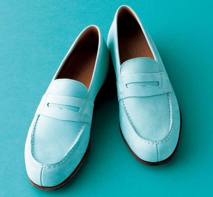 正統派ブランドのローファーですが、ヌバックのアクアグリーンは新鮮です。シューズ〈H1.5cm〉(ジェイエムウエストン/ジェイエムウエストン 青山店)