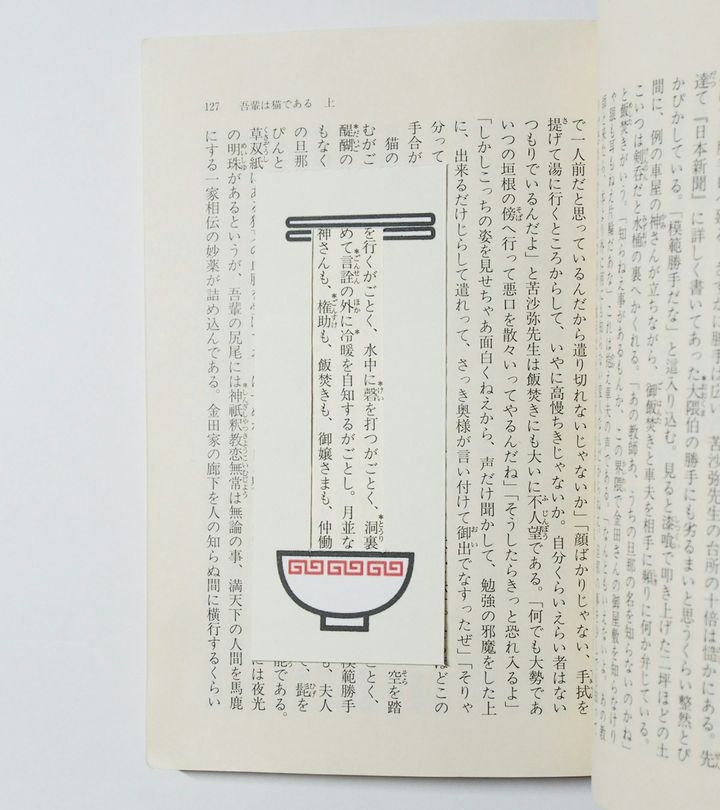 これは面白いアイデアですよね。本に挟むことで文字が麺に見えてくるのですが、このようなしおりだと本を読むのが楽しくなりそうです。