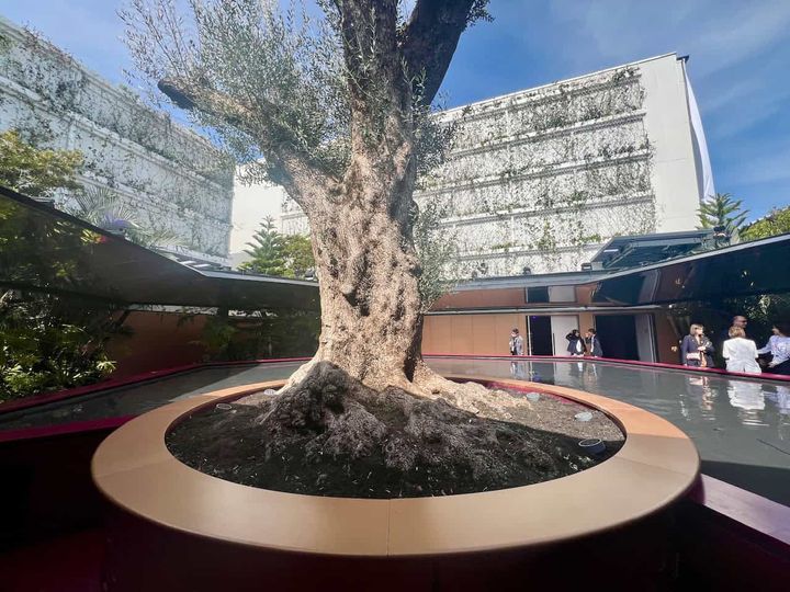 人工池のほとりに立つこちらのオリーブの木はなんと、樹齢千年超、南仏から運んできたとのことです。