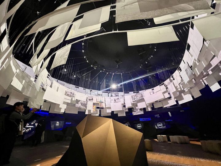なんとこちら、高さ 6 メートル以上に達する大きさで、廃棄予定のライスペーパーで作られています。北欧の人々の日常を写したダイナミックな映像や北欧の四季が映し出されます。