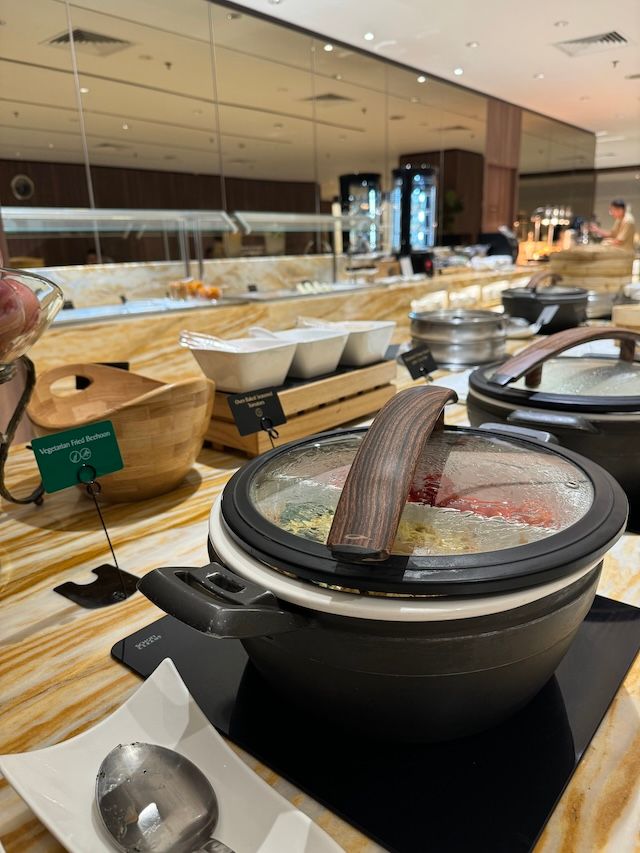 オールデイダイニングでは、シンガポール発便ならではの特別メニューとして、地元の人気料理「シンガポールチキンライス」や「ラクサ」が提供されることもあります。