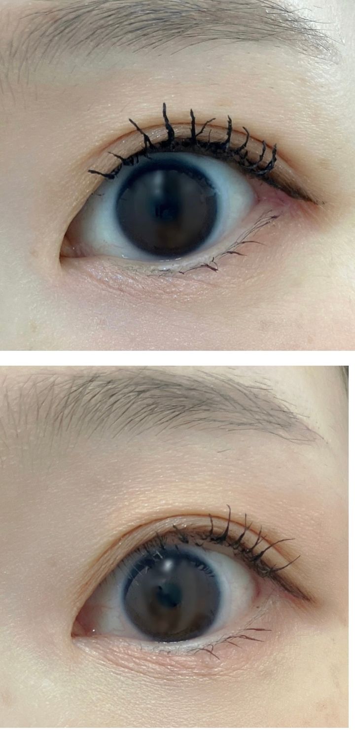 クマ消えすぎて逆にふっくら見えてしまうのでメイク比較も。上が普段メイクで下がムラ消しイエローを使っています。