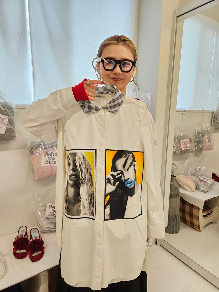 「アクネのシャツは、インパクトのあるプリントでモードっぽいけど、ボトムがデニムならよさそう! ¥32,810です」(あかり)