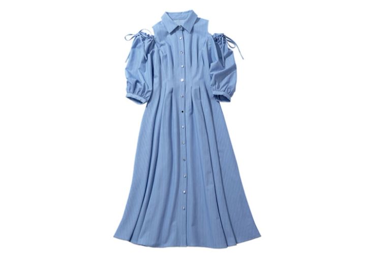パフ袖やリボンの甘さに肌見せのアクセントを。シャツワンピース¥14,300MISCH MASCH(ダブルエー)
