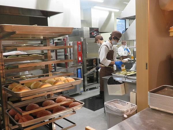 パンは全て店内の工房でひとつひとつ丁寧に作られており、職人さんが実際にパンを作っている様子も見ることができます。