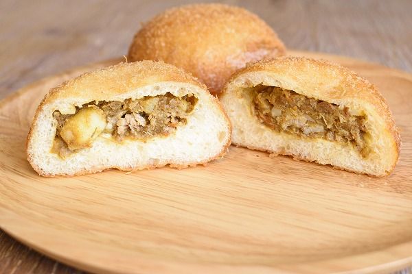 外側はカリっとした食感で、中には具材がたっぷり詰まった特製カレーパン。