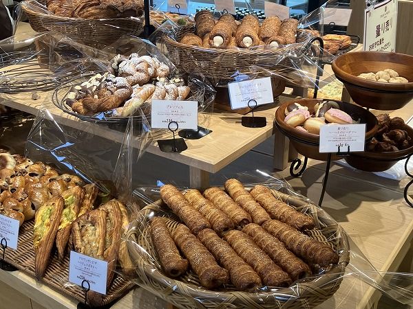 店内に足を踏み入れると、焼き立てパンの良い香りが広がっていて、それだけで幸せな気持ちに。 売場にはたくさんの種類のパンが並んでおり、どれも美味しそうで、目移りしてしまいます。なんと、1日に100種類以上のパンが並ぶそう。