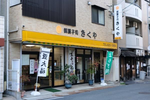『きくや菓子舗』は、昭和36年創業の和菓子店。 先代の渡部章一さんが、道後一万にある現店舗の隣にお店を構えました。