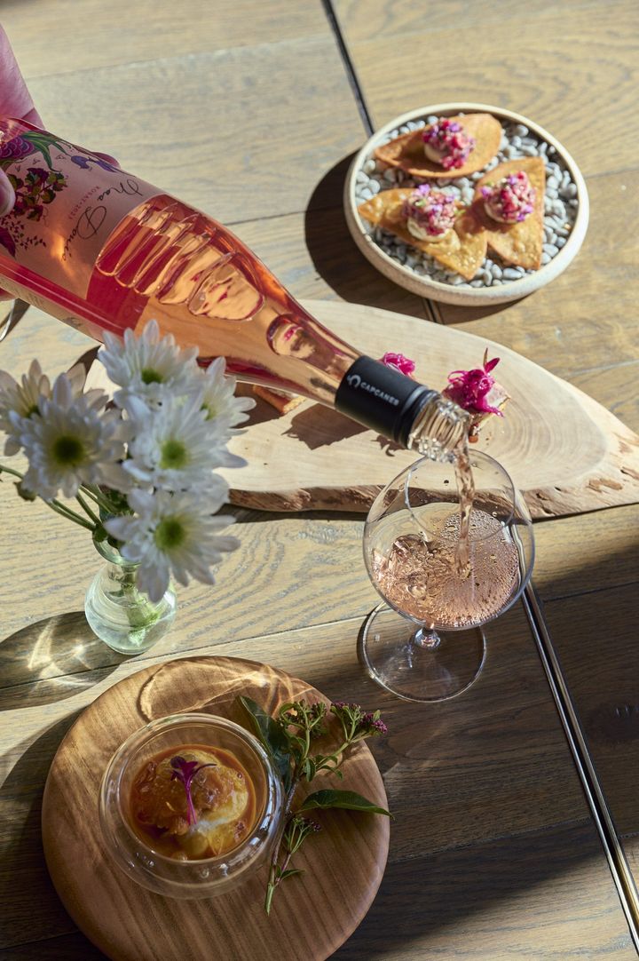 3月4日から新たに春限定のおまかせコースとロゼフリーフローがセットになったプランがスタート。経産牛の薪焼きや春野菜などの旬の素材を活かしたシグニチャーディッシュが楽しめます。味覚だけでなく桜をイメージした一品など、視覚からも春を存分に堪能でき、つい写真を撮りたくなるほど、華やかなテーブルに。女子会でも盛り上がること必至です。