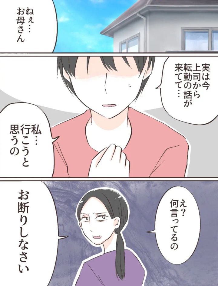 帰宅したマサミさんは、「ねぇ・・・お母さん。実は今上司から転勤の話が来てて・・・私行こうと思うの。」とさっそくお母さんに転勤のことを伝えました。