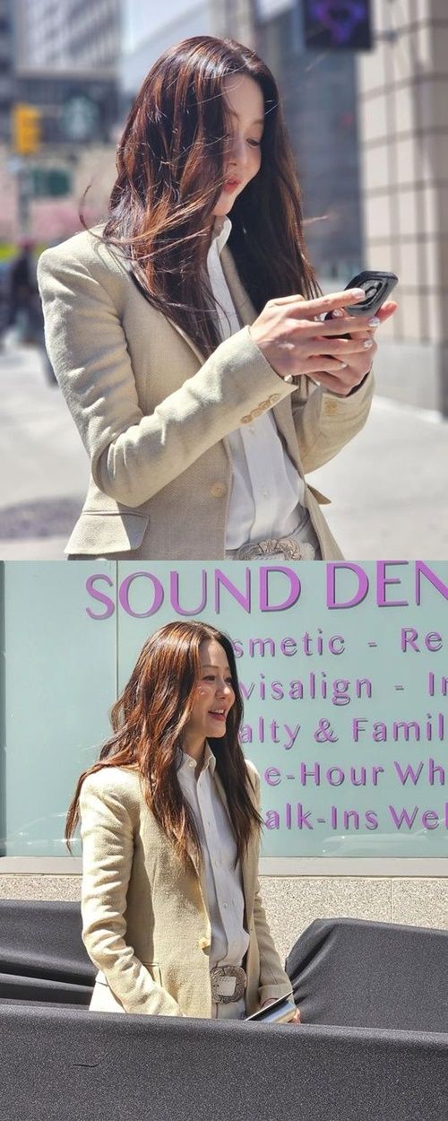 とりわけ目を引くのは、コ・ヒョンジョンの美しさである。穏やかな日差しの下、横顔が光を受けて輝き、ナチュラルながらも女性らしい魅力を引き立てるメイクと、気取らない中にもセンスが光るファッションが印象的だ。